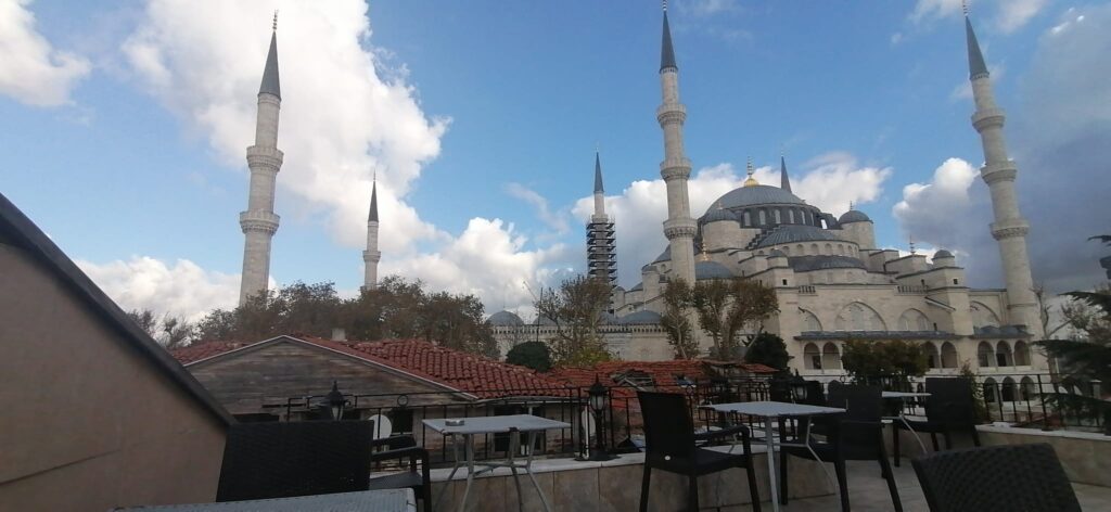 The hotel itself is an original house from the Ottoman Empire, which has been respectfully converted for your comfort. The panoramic view of the terrace is stunning as it is located only 100 meters away from the Blue Mosque and 300 meters from Hagia Sophia.