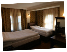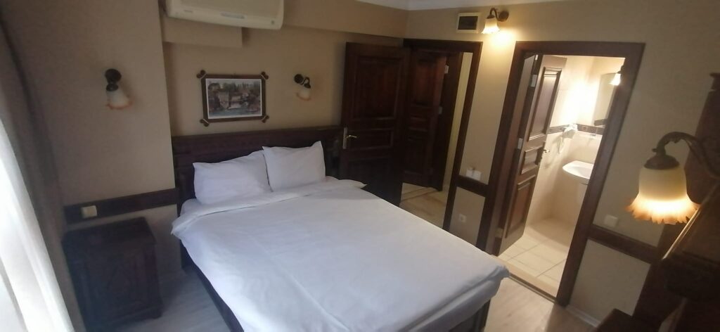 With two single beds, calm lighting, and classic Ottoman-style details, these rooms offer a restful and practical stay.